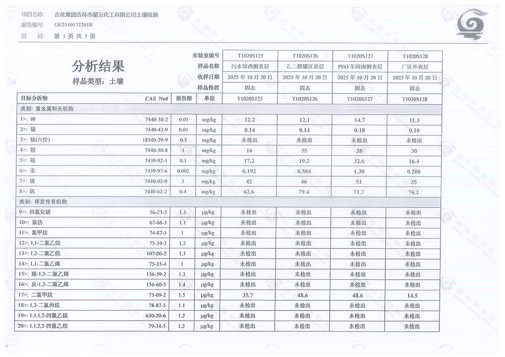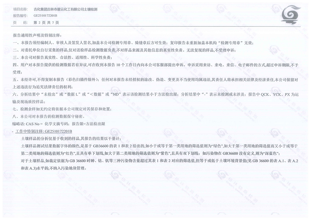 關(guān)于吉化集團(tuán)吉林市星云化工有限公司2025年土壤檢測(cè)報(bào)告公示